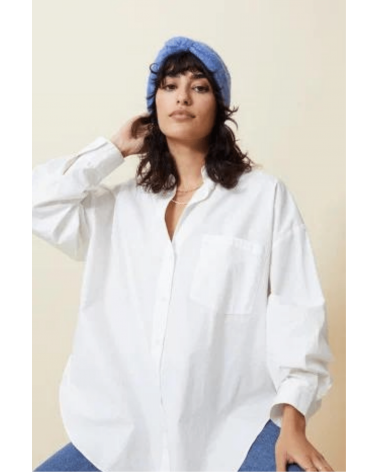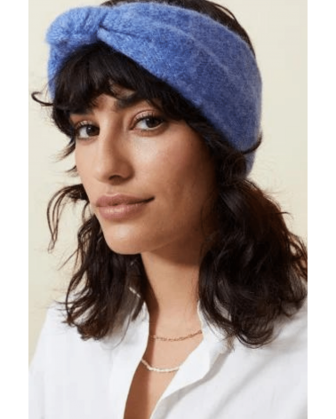 Le Bandeau Garcia bleu est en maille. Il y a un détail noué sur le devant.
