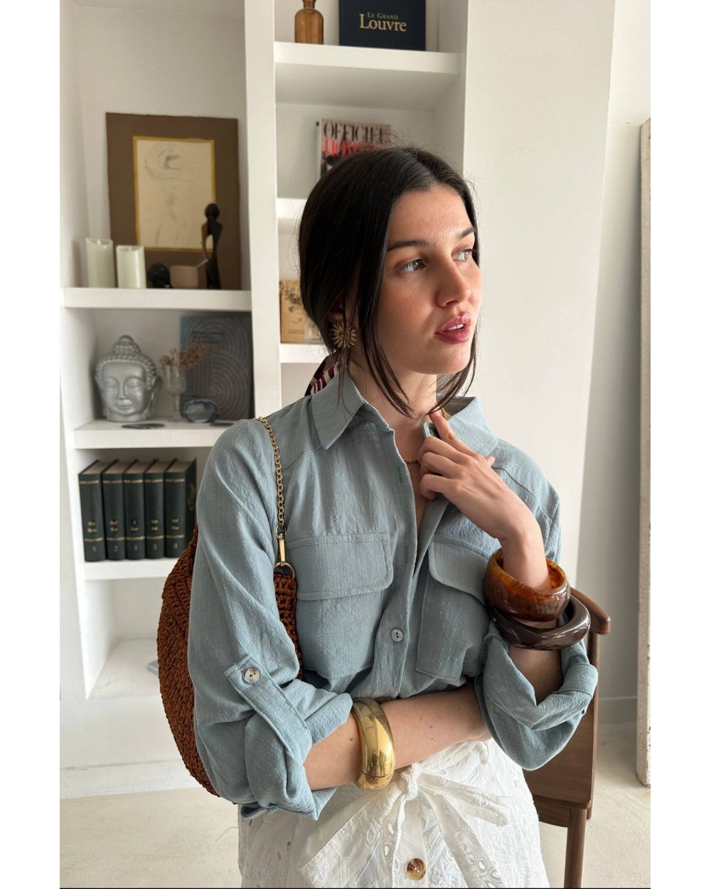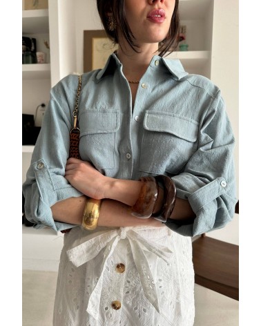 • Chemise bleue basique à grandes poches poitrine