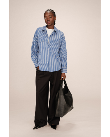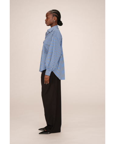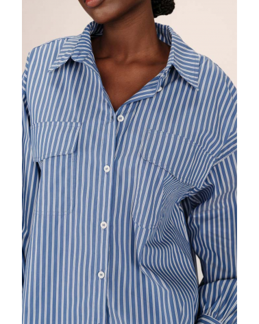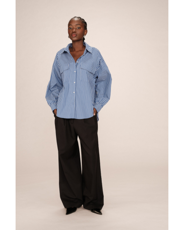 Un classique masculin-féminin revisité avec style ! La chemise Sorbet, en coton rayé bleu et blanc, mise sur une coupe oversize et un col large pour une allure effortless chic.