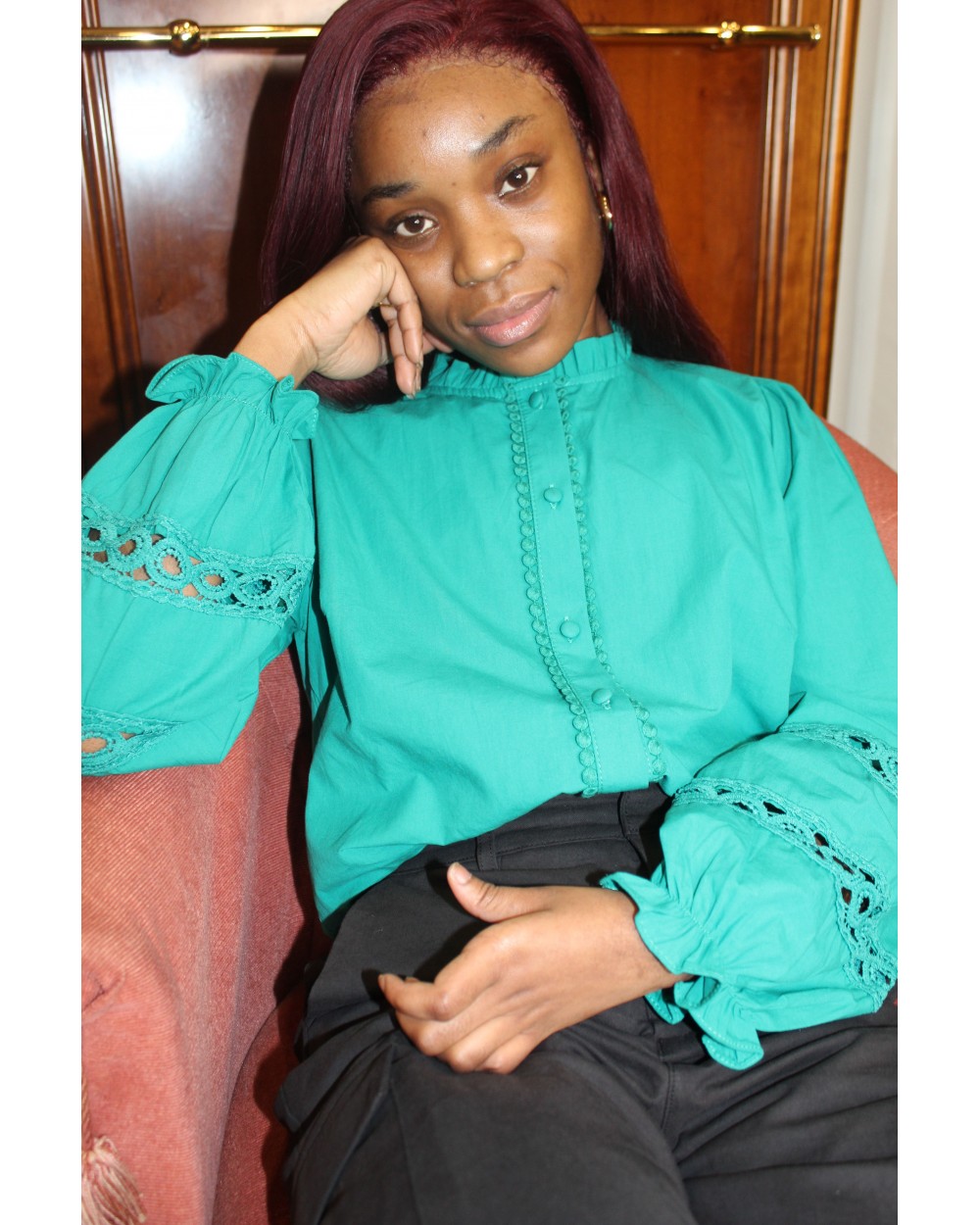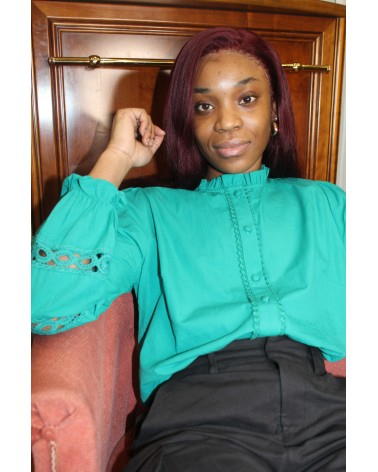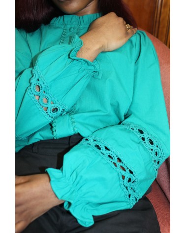 La blouse MOLLY est le haut parfait pour la working girl stylée : professionnelle et légère. Nous adorons ses manches bouffantes avec des détails ajourés. Faite de tissu 100% coton, portez-la toute l'année pour vos différentes occasions. Louez-la !