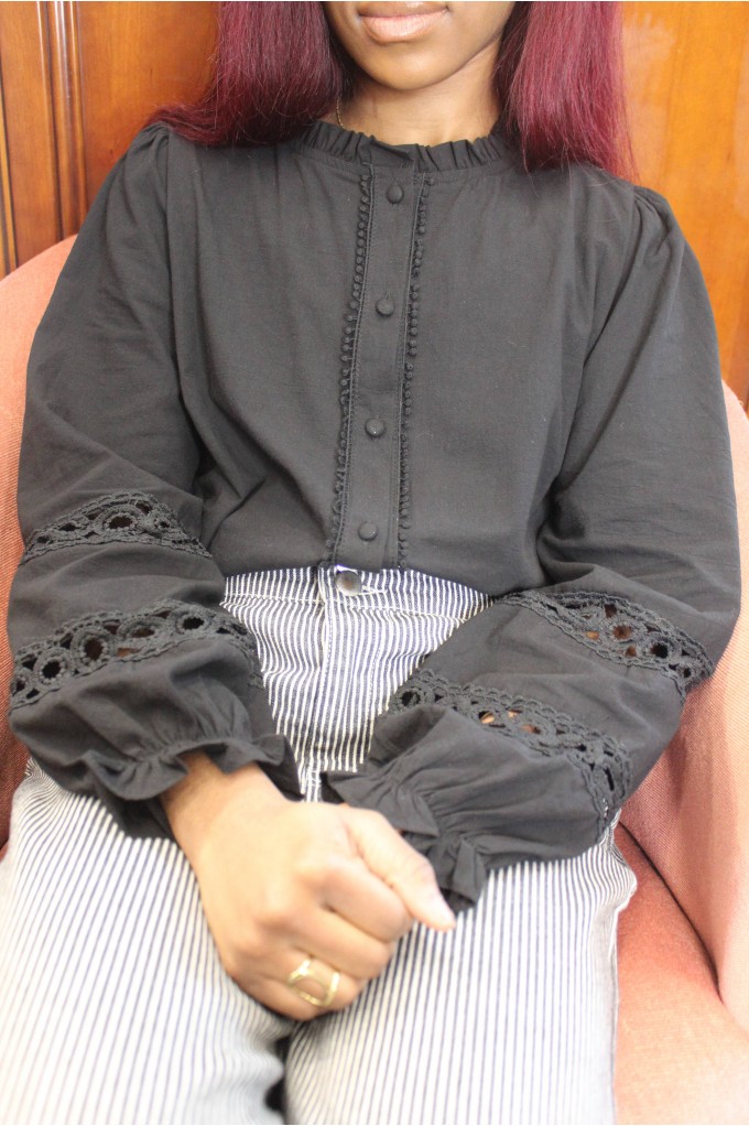 La blouse MOLLY est le haut parfait pour la working girl stylée : professionnelle et légère. Nous adorons ses manches bouffantes avec des détails ajourés. Faite de tissu 100% coton, portez-la toute l'année pour vos différentes occasions. Louez-la !
