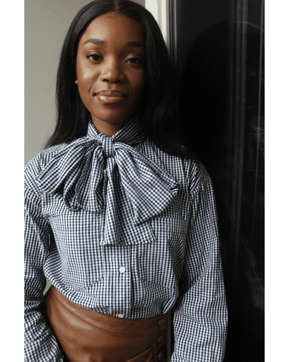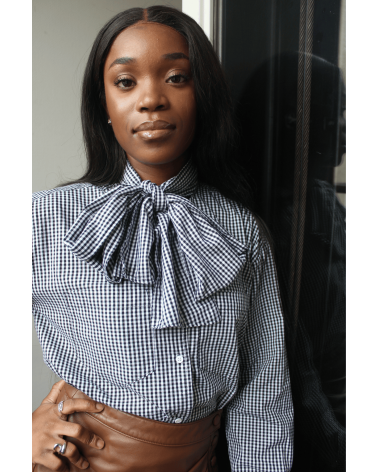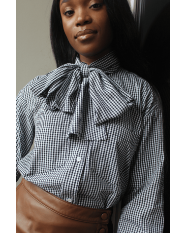 La blouse Nelly est LA pièce tendance ! Avec son motif vichy et son noeud la rendent unique en son genre. Allez hop, dans la Box !