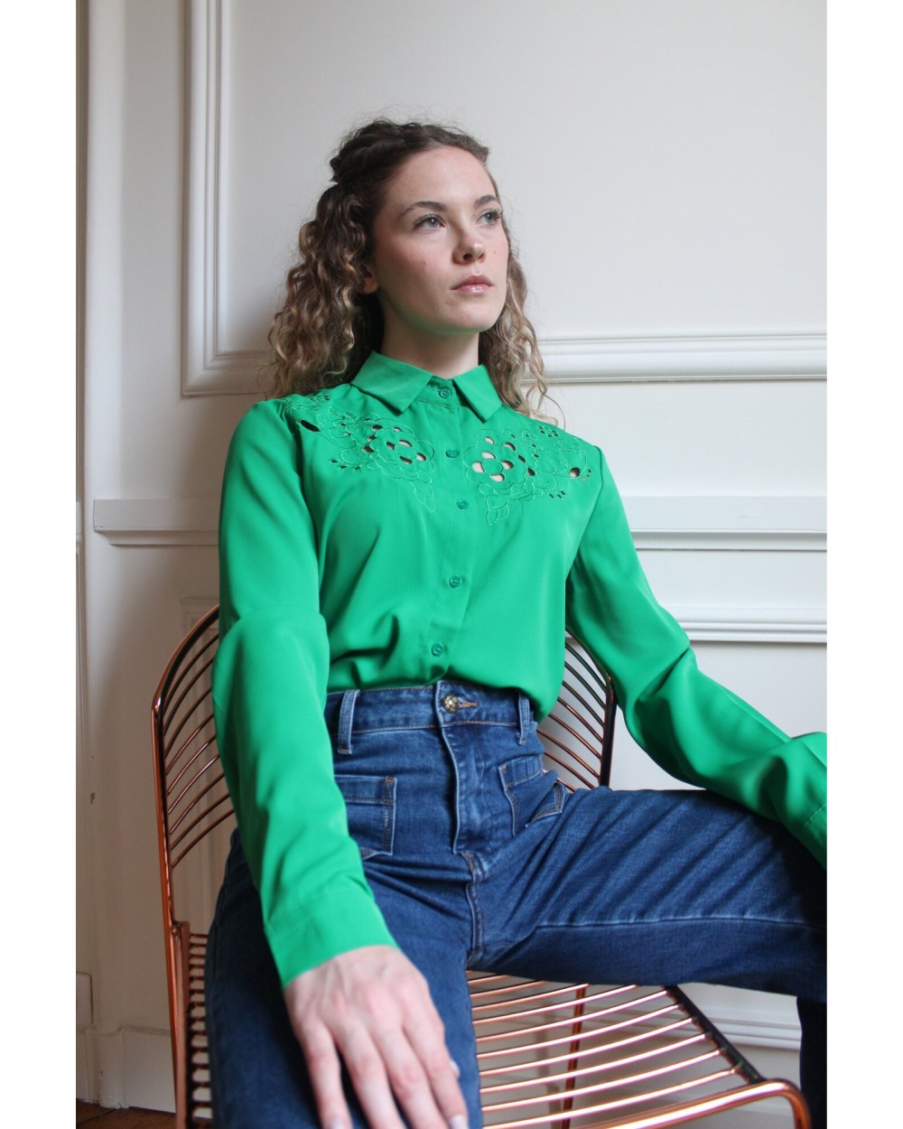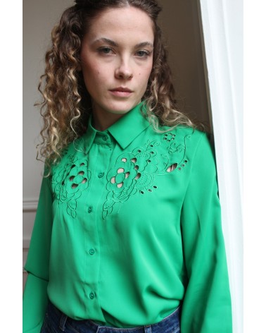 Ajoutez une touche d'élégance et de raffinement à votre garde-robe avec la chemise Precieuse, délicatement ornée de broderie ajourées.