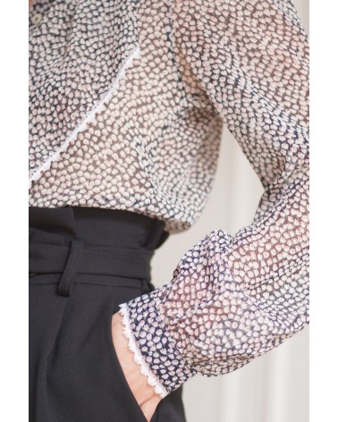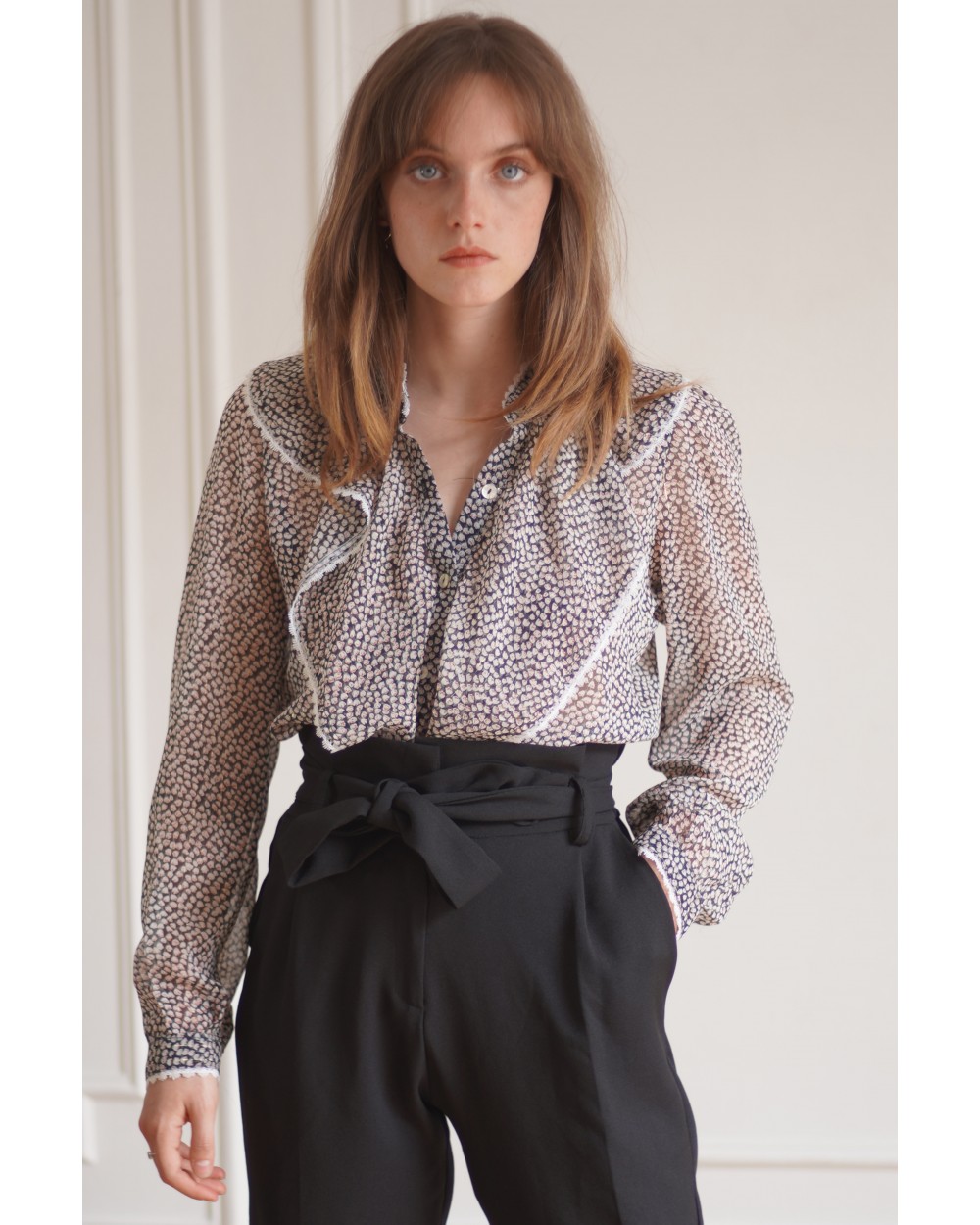 • Volants et ruban de dentelle au col