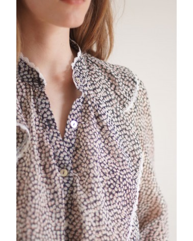 Le chemisier Telma est un mélange parfait entre originalité et élégance avec son motif fleuri incrusté de fils dorés. Louez-le !