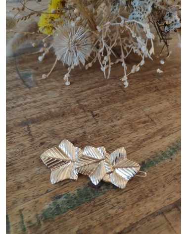 Aurélie est une broche en forme de 3 feuilles dorées. Elle rehaussera n'importe quel look.