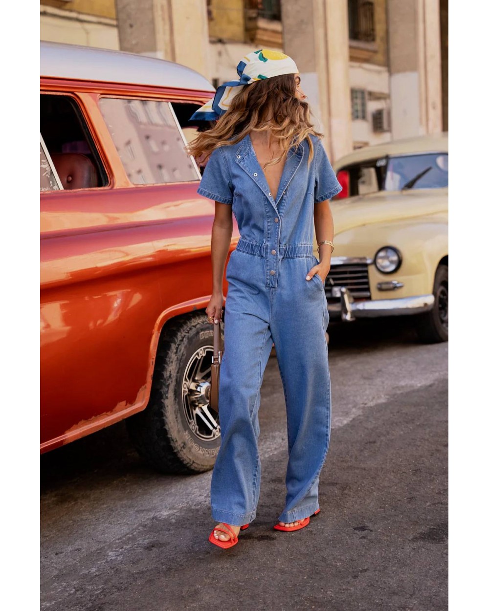 La combinaison Mady est un basique incontournable dans la garde-robe d'une fashionista. Sa coupe ajustée au niveau de la taille avec un pantalon à pattes d'éléphants d'inspiration vintage font la singularité de Mady. Vous pouvez l'accessoiriser pour un look à votre ressemblance ! N'attendez plus, louez-la !