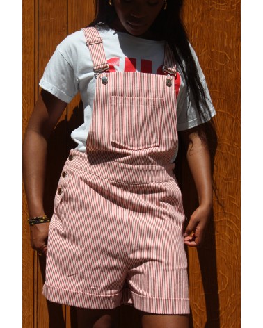 La salopette Playa revisite le short d’été avec une allure fraîche et décontractée. Rayée rouge et blanc, elle affiche un look estival plein de peps. Confectionnée en 100% coton, elle est dotée de boutons argentés, d’une poche centrale plaquée, de poches italiennes et de boutonnières sur les côtés pour plus de confort. Une pièce parfaite pour flâner au soleil.