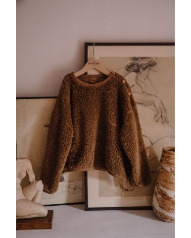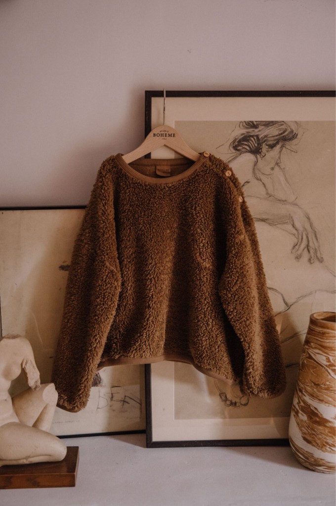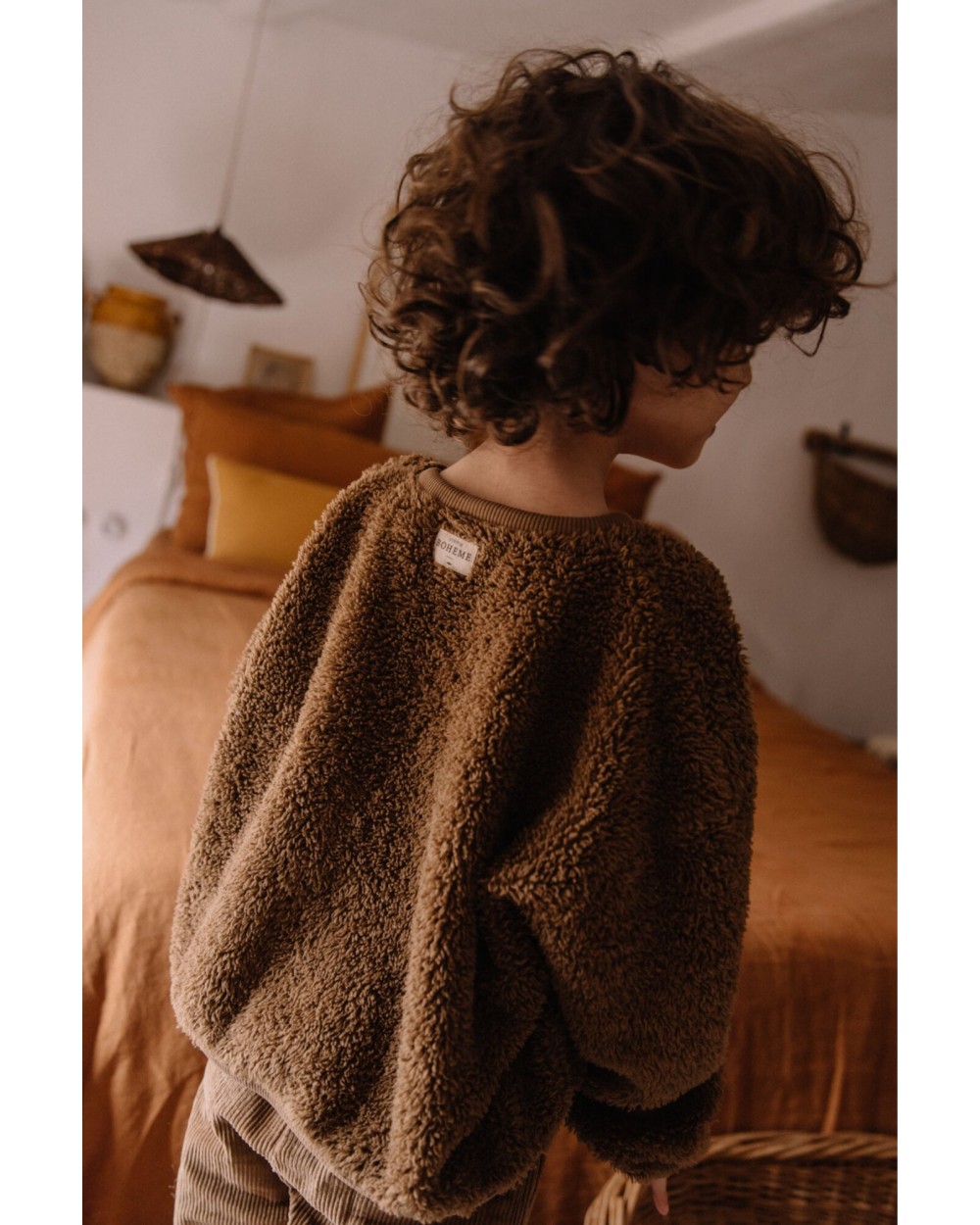 Le Pull Jamy moumoute est un véritable cocon de douceur. Avec son tissu moelleux et sa coupe décontractée, il offre confort et chaleur tout en ajoutant  une touche de cosy au style de bébé.