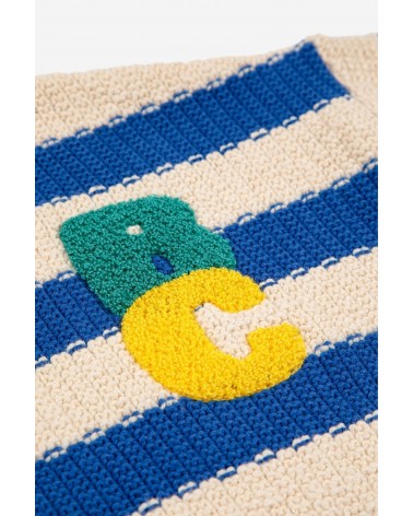 Le Pull Jaussy à rayure, moderne et rafraîchissant, idéale pour ajouter une touche de dynamisme au look de bébé.