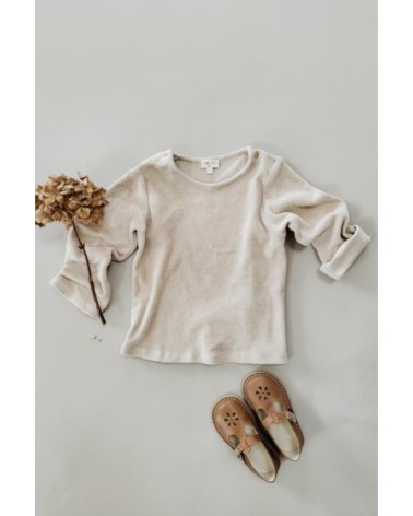 Le Top Capucine à manches longues beige est à la fois doux et élégant, offrant confort et style pour votre bébé. Sa couleur chaleureuse et sa coupe pratique en font un choix parfait pour les journées fraîches, tout en s'associant facilement à différents pantalons ou jupes pour un look tendance et confortable.