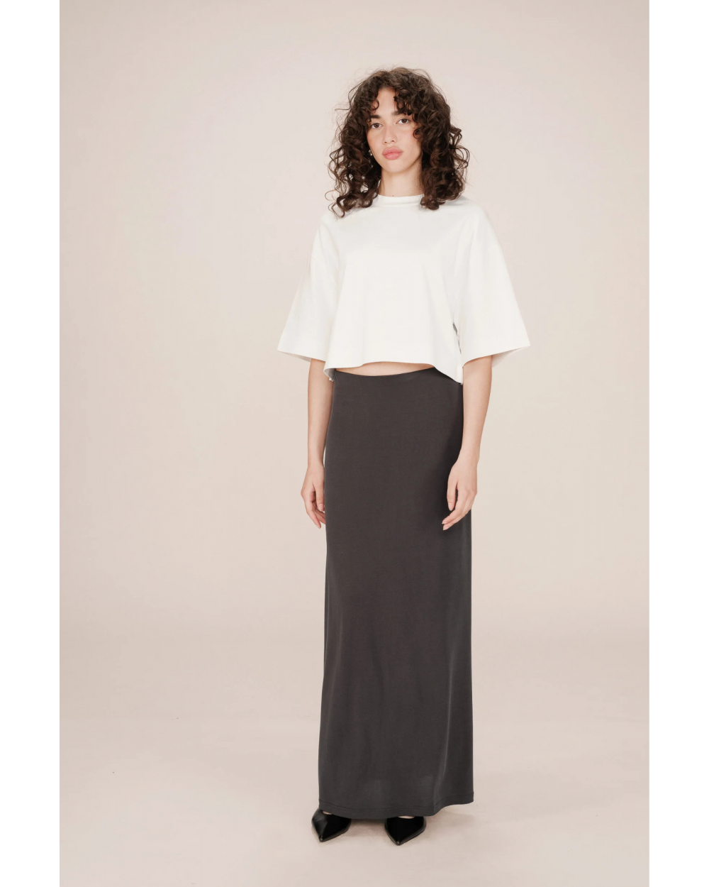 Un essentiel minimaliste et ultra fluide ! La jupe Sama allonge la silhouette avec sa coupe droite et sa longueur maxi. Taille élastiquée au dos pour plus de confort, elle se mixe facilement avec un top loose ou une maille près du corps. Allez hop dans la box !