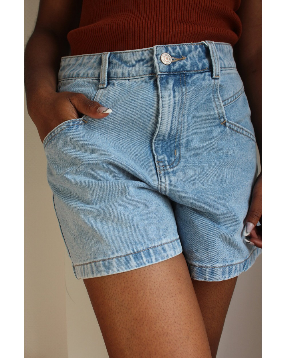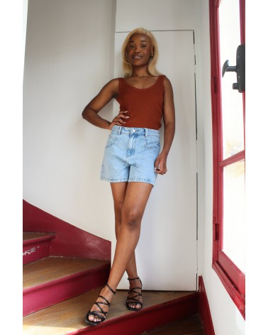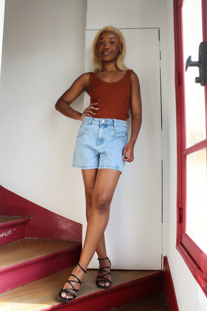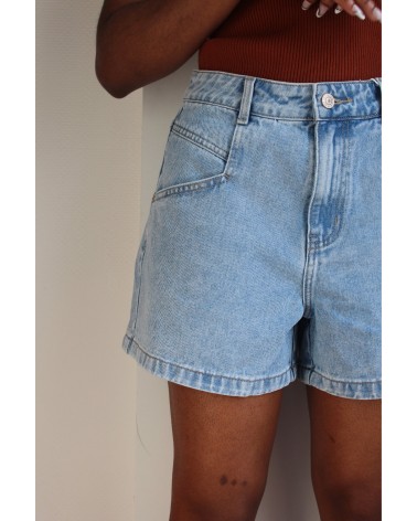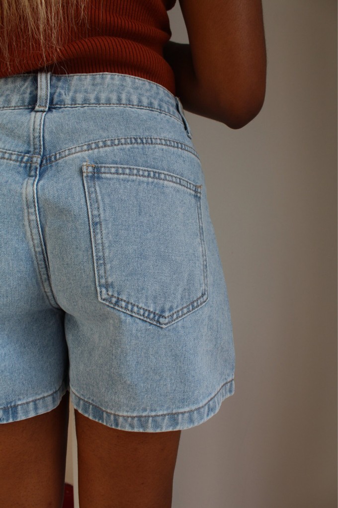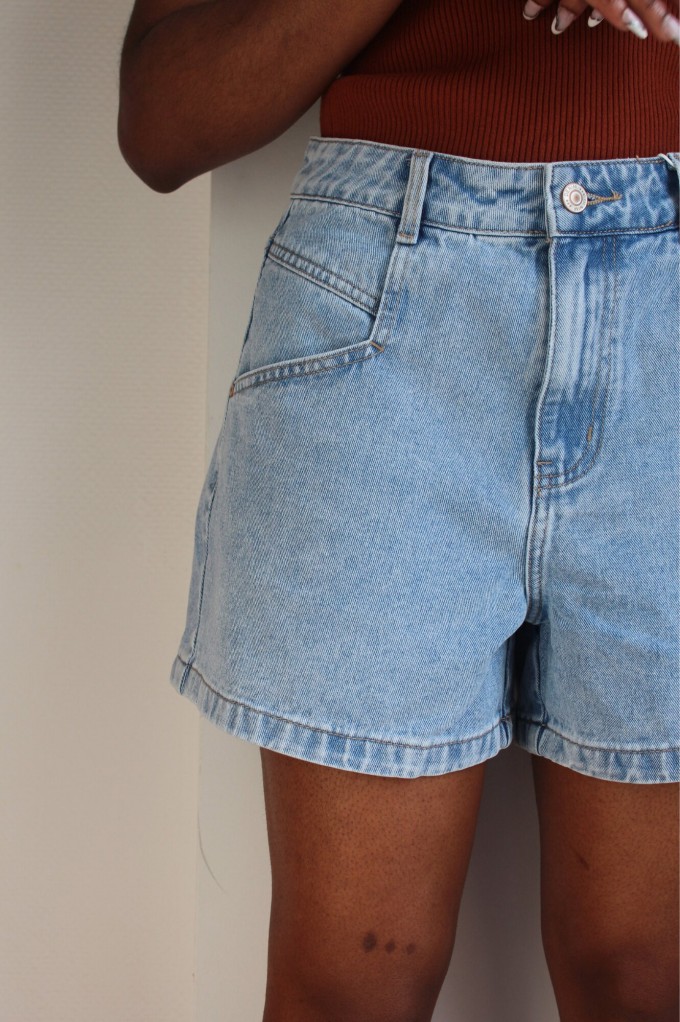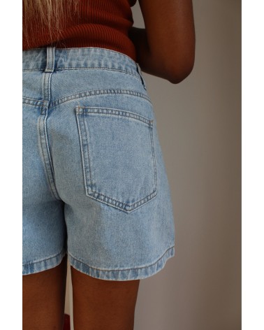 Le short Mona est un short en denim délavé classique. Ajustée à la taille, il saura allonger et sublimer votre silhouette, N'attendez plus, louez-le !