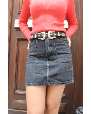 La jupe Norah est une jupe en denim noir classique. Ajustée à la taille, il saura allonger et sublimer votre silhouette, N'attendez plus, louez-le !