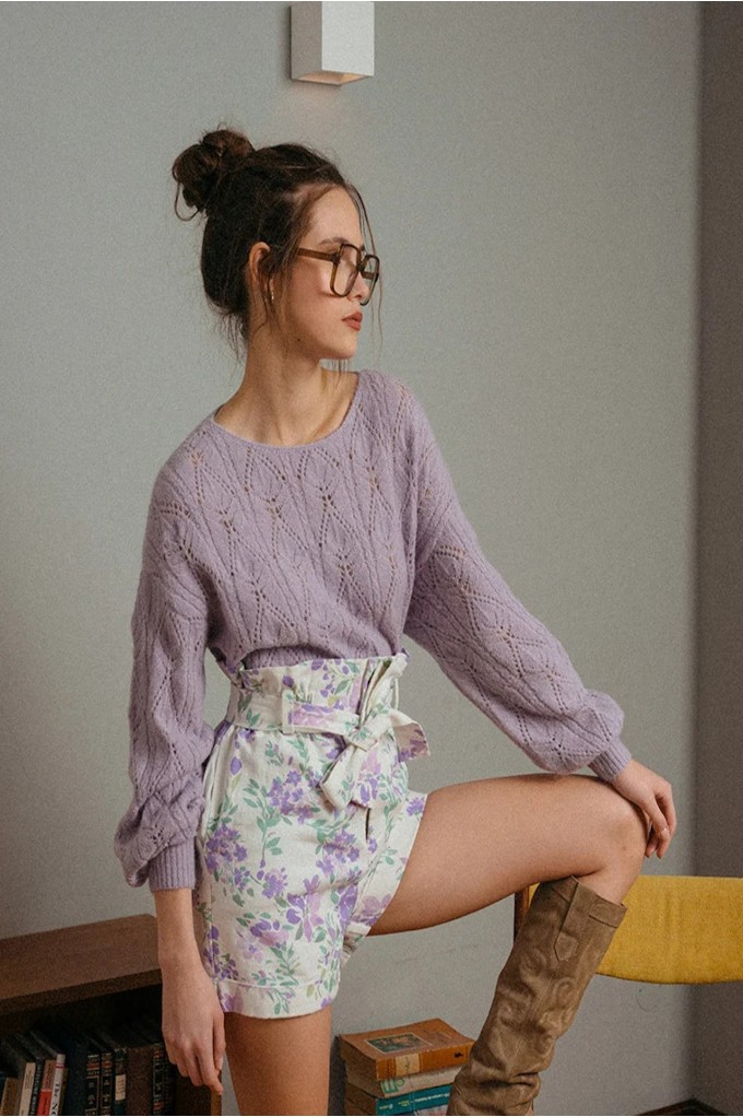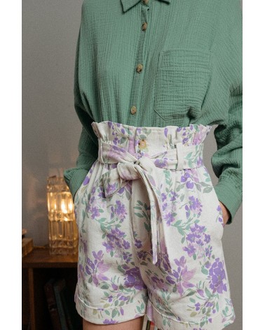 La coupe : ERNEST est un short paperbag avec la taille élastiquée et une ceinture de tissu à nouer.