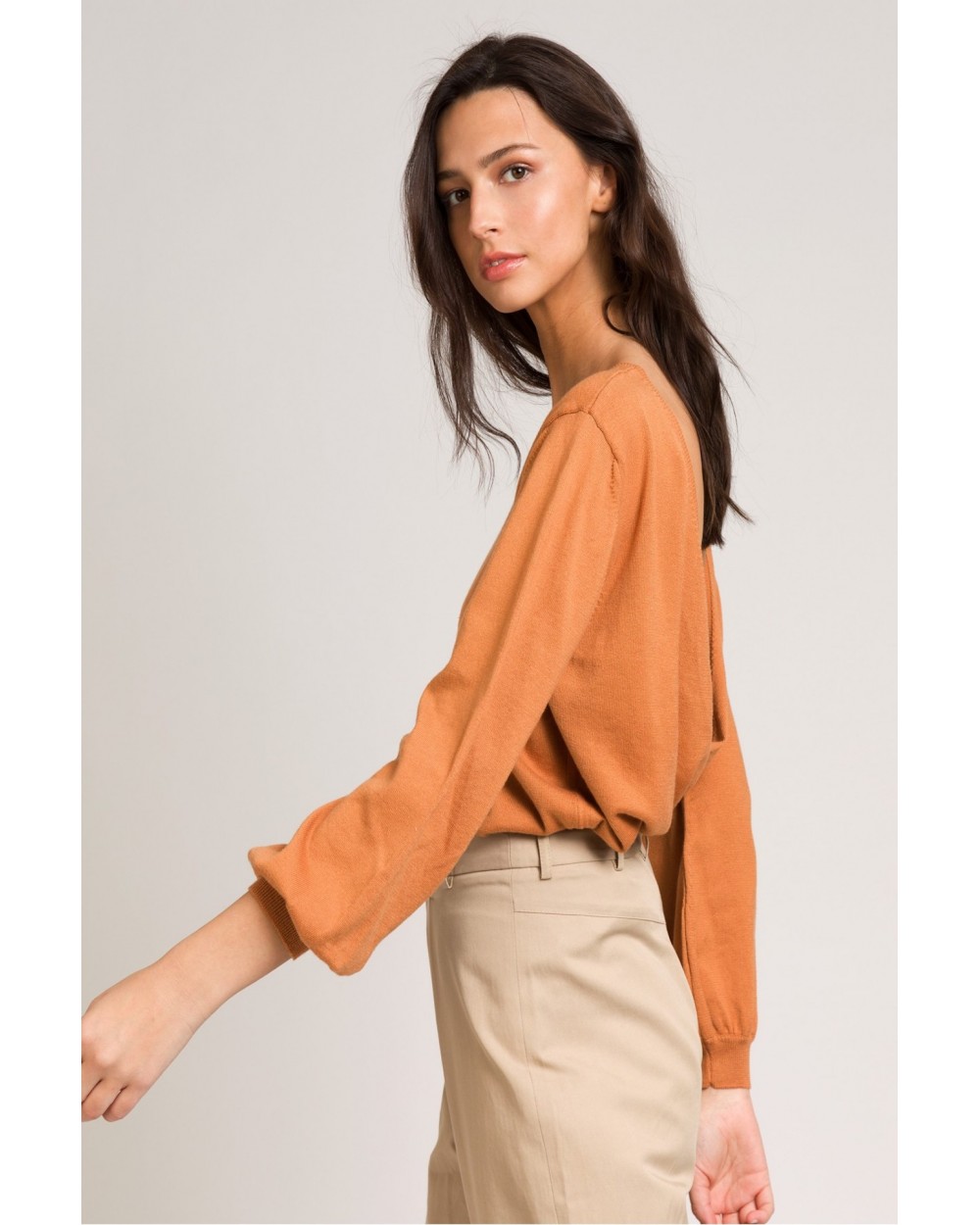 Le pull Laglae caramel apporte féminité à votre look avec son dos dénudé ! Louez-le, vous ne le regretterez pas !