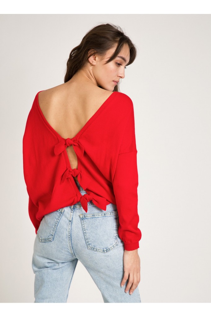 Le pull Lowen Rouge est un pull ample en maille noué au dos, pour un look casual et féminin ! À louer absolument !