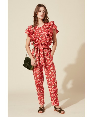Ce pantalon rouge coupé droit à taille haute avec son motif fleuri sera parfait pour habiller vos tenues. Il possède une ceinture assortie afin de pouvoir l'ajuster au niveau de la taille.