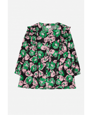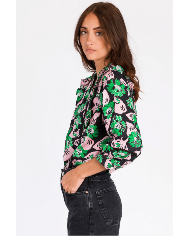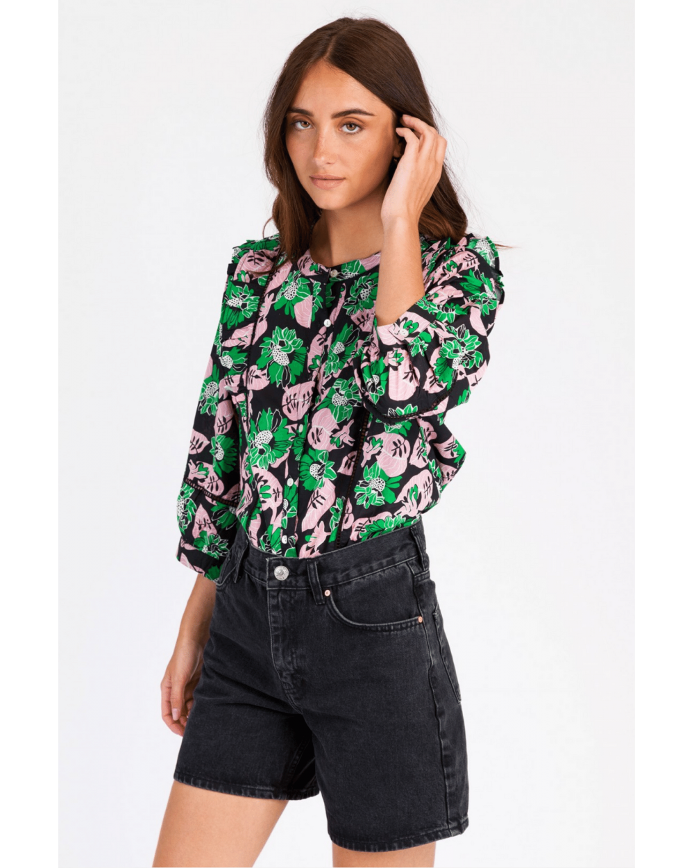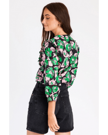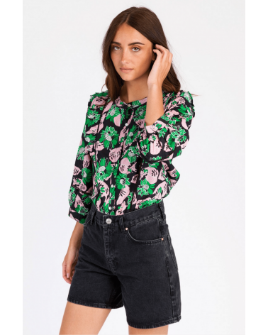 La blouse Solena en coton imprimé et frais respire les beaux jours. On note ses petits volants au niveau des emmanchures et ses détails en dentelles qui apporte à la blouse une touche féminine. À louer absolument !