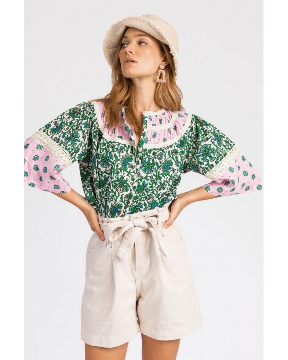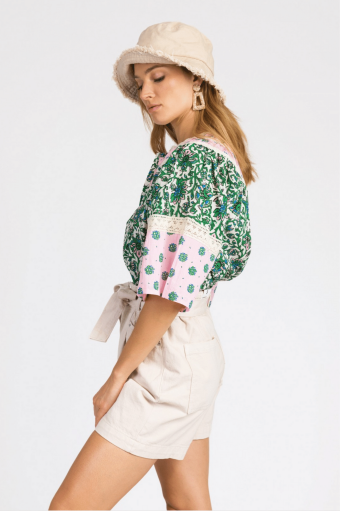 La blouse Soudya en coton imprimé et léger est parfaite pour les beaux jours. On note ses manches courtes et larges qui apportent volume et légèreté. Louez le pour vos journées au soleil !