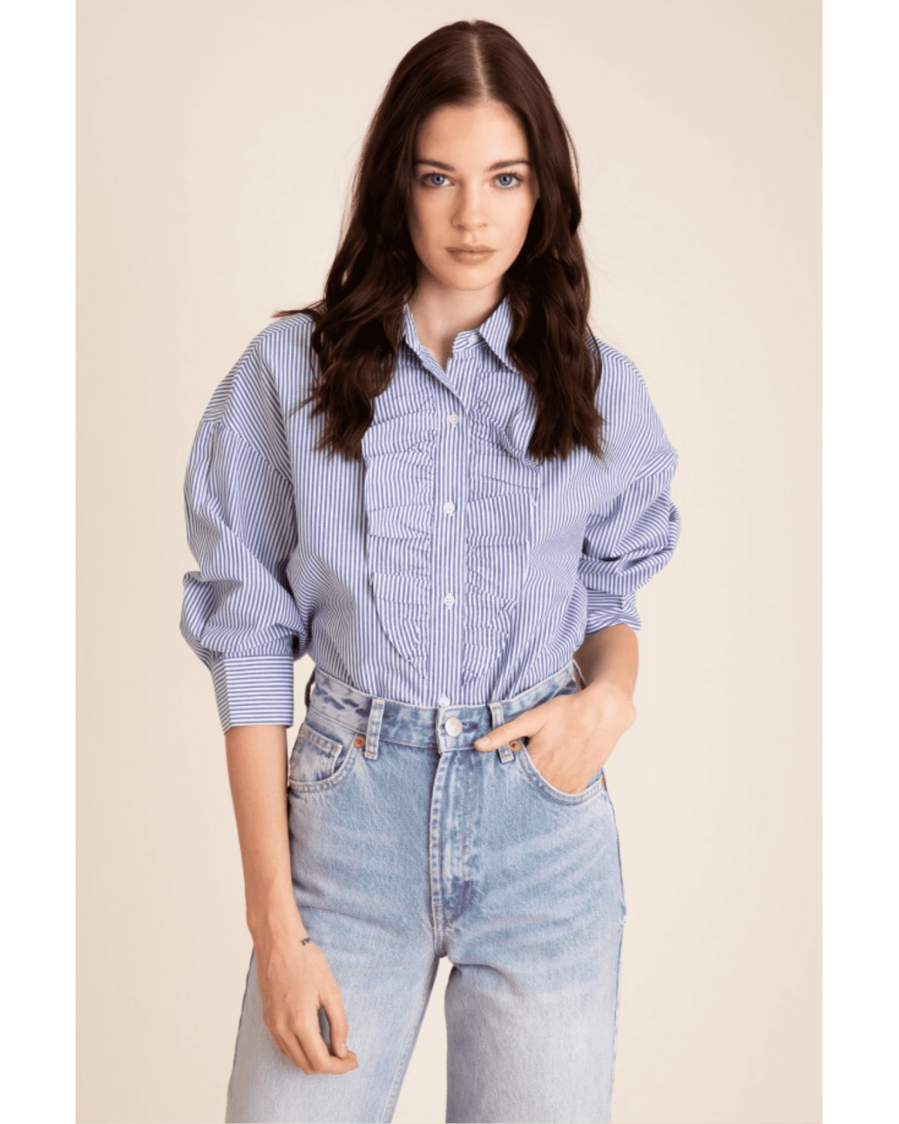 La chemise Séverine en coton rappelle les blouses d'artistes avec ses manches légèrement amples et raglan. Elle est réalisée dans un coton légèrement rigide et agréable. Louez-la pour vos looks bohèmes !
