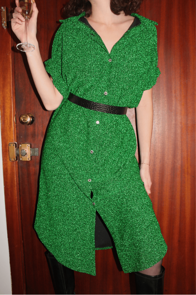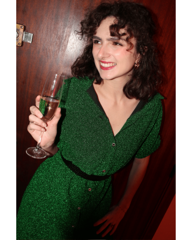 La robe Penelope verte à paillettes est parfaite pour les fêtes, louez-la !