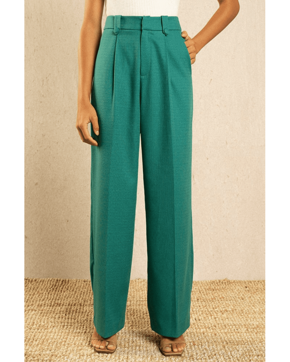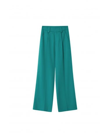 Le pantalon Irvine vert est un pantalon large à plis. Il est ajusté à la taille et vient dessiner la silhouette.