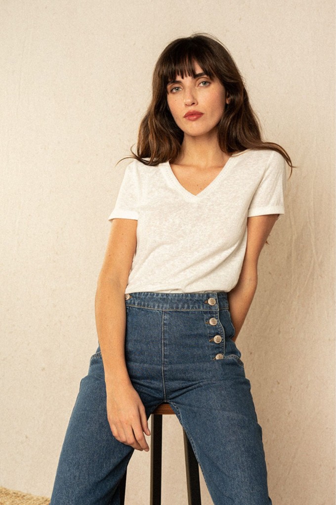 Manon mesure 1m76 et porte une taille unique. Naturellement oversize, le T-Shirt taille légèrement plus grand.
