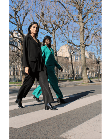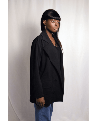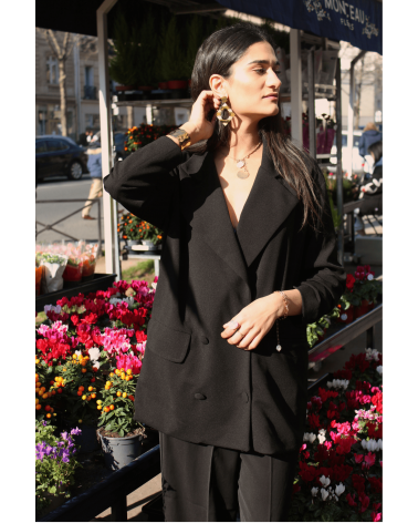 La veste Iseult est un blazer noir oversize à double boutonnage avec un revers assez large. Sublimez vos looks de cette pièce incontournable, louez-la !