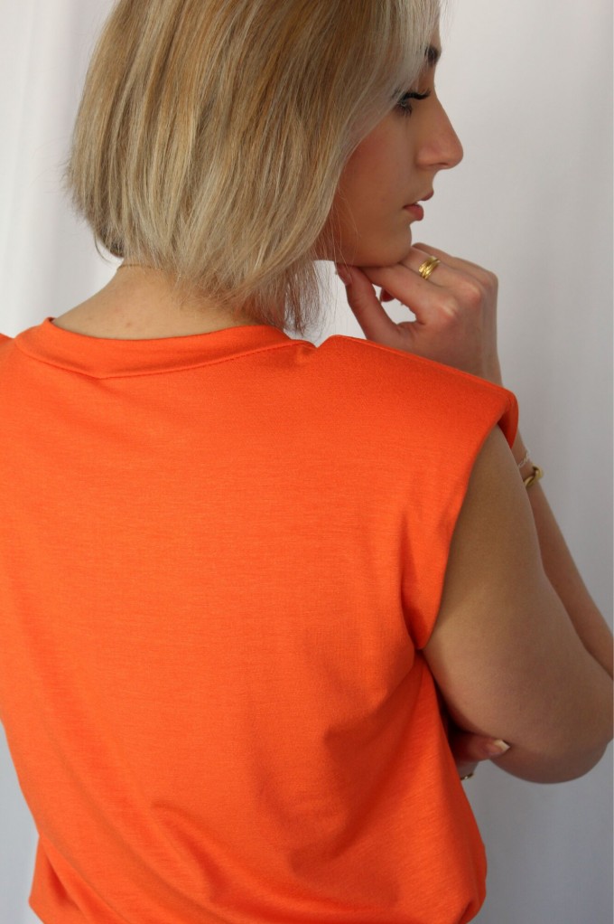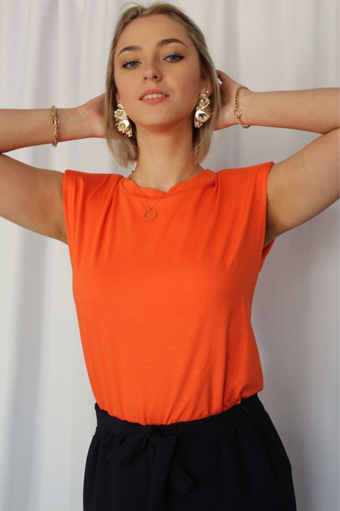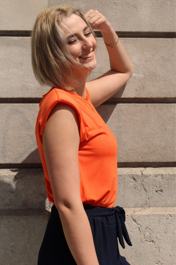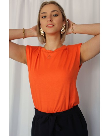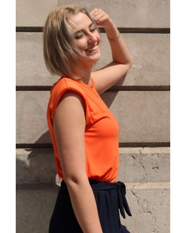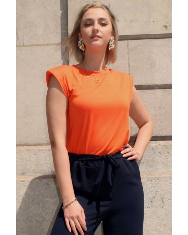 Le T-Shirt Iva est un haut sans manche orange. Ce T-Shirt à épaulettes est un basique revisité pour votre garde robe ! Louez-le pour vos looks du quotidien !