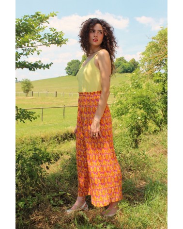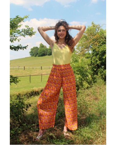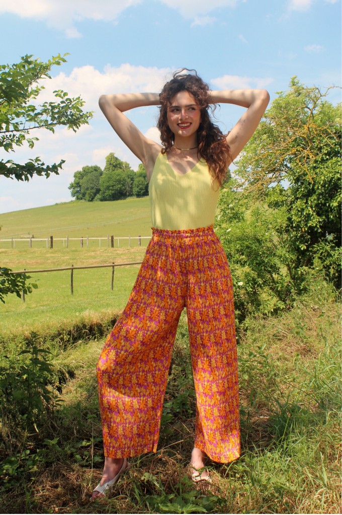 Le pantalon Achille est un pantalon large, plissé et fluide. L'allure du pantalon attire, et souligne la démarche avec élégance. On se sent bien dans son look, et on se délecte du confort que nous offre cette pièce qui fait sensation.