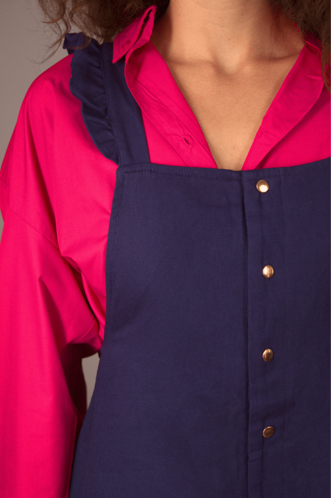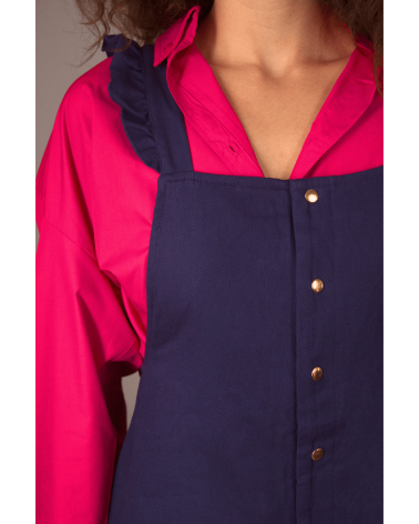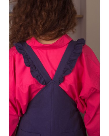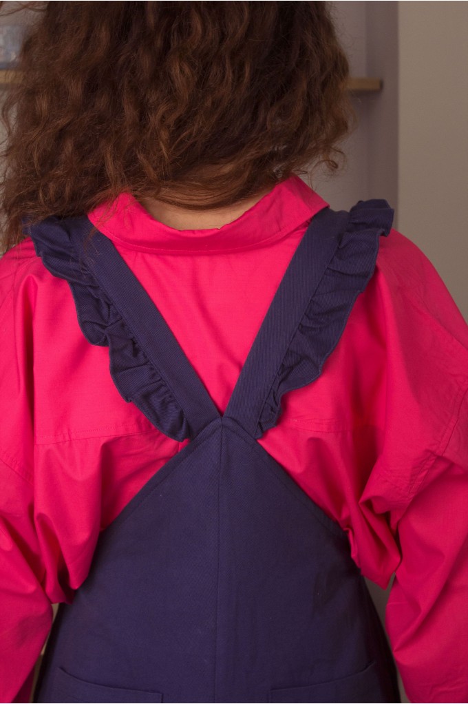 Cette combishort élégante offre un look très féminin. À porter avec une chemise ou un pull pour un look automnal. Le détail qui fait tout : les bretelles croisées au dos.