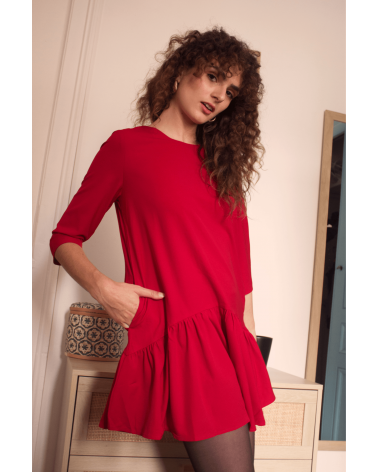 • Volants au bas de la robe