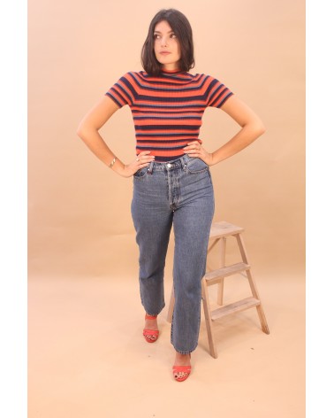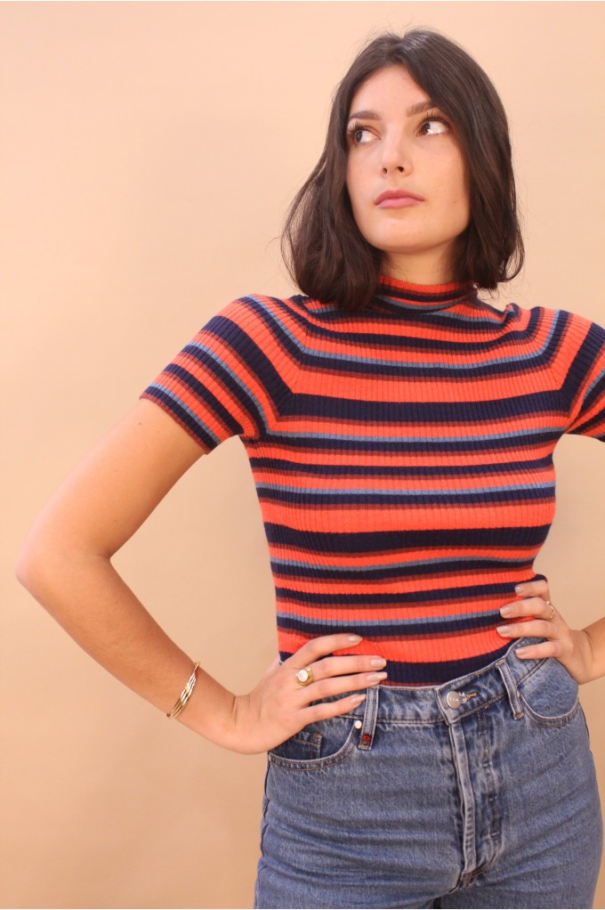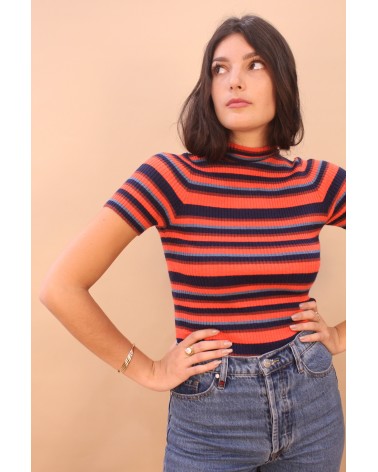 Ce pull à manches courtes est parfait pour la mi-saison. Ces rayures colorées lui donnent un look vintage et rétro. Il peut s'associer aussi bien avec un jean qu'avec une jupe. Louez-le !