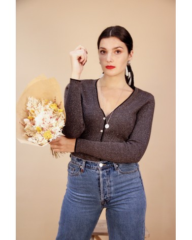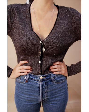 Ce cardigan scintillant saura révéler le glamour qu'il y'a en vous ! En mélangeant une forme classique et un imprimé tendance, il sera le bienvenu autant au travail qu'à une sortie entre amies. Il peut se porter fermer en tant que top ou ouvert en tant que gilet, louez-le !