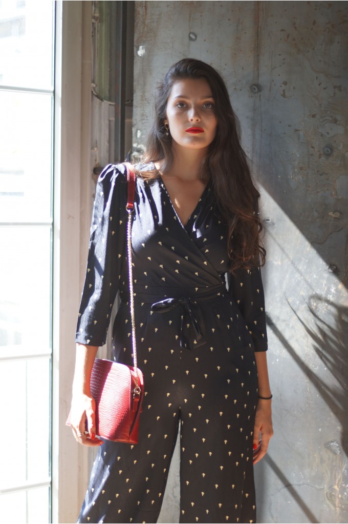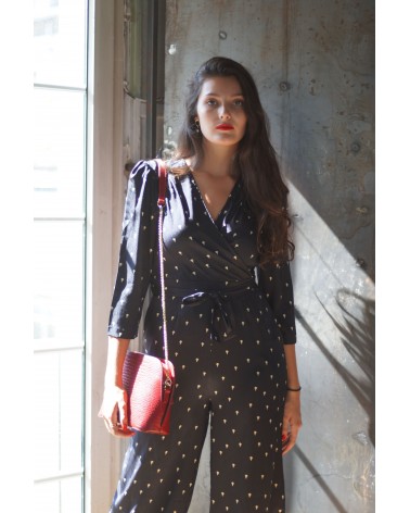 Cette combinaison est parfaite pour une grande occasion comme un mariage ou une soirée. À porter avec des talons pour un look chic ou pour un look bohème avec une paire de baskets. Sa taille cintrée et ses jambes évasées la rendent très féminine et singulière.