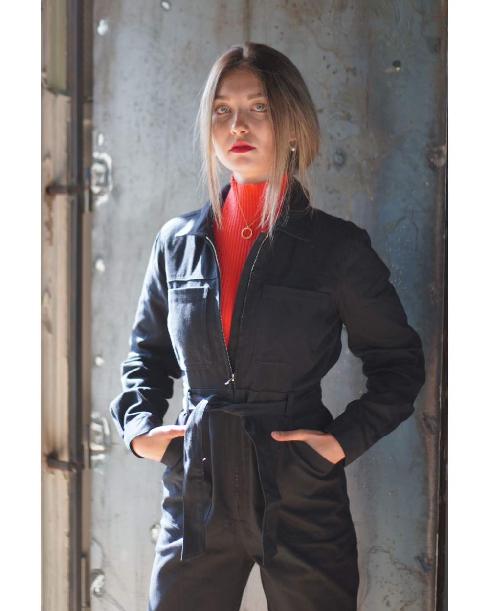 Cette combinaison au style urbain peut se porter seule ou avec un pull au dessous pour un look branché. A porter avec des talons pour un style décalé ou des baskets pour rester décontractée.