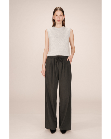 Un basique revisité avec une touche tailoring ! Le pantalon Stay affiche une coupe large et une taille élastiquée pour un confort optimal, dans un tissu gris chiné au tomber parfait. Idéal pour un look preppy ou une silhouette minimaliste. Allez hop dans la box !