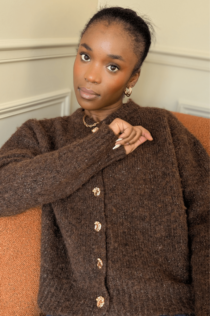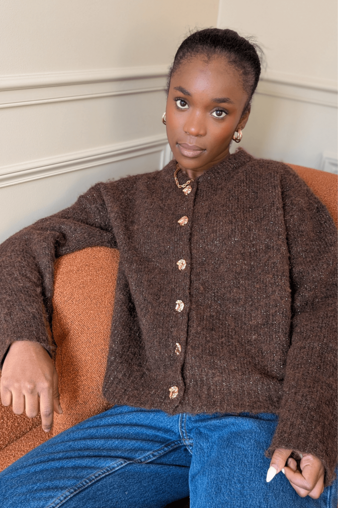 Sa teinte brun châtaigne réchauffe la silhouette. Avec son tombé souple et sa texture douce, il incarne la féminité discrète et affirmée celle d’une femme Possible. À porter seul sur la peau ou superposé à une chemise blanche, pour une élégance simple et sans effort. Associez Tendre à un pantalon taille haute ou une jupe midi en laine pour une allure automnale aussi douce qu’assurée. Plus d'hésitation, hop dans la box.