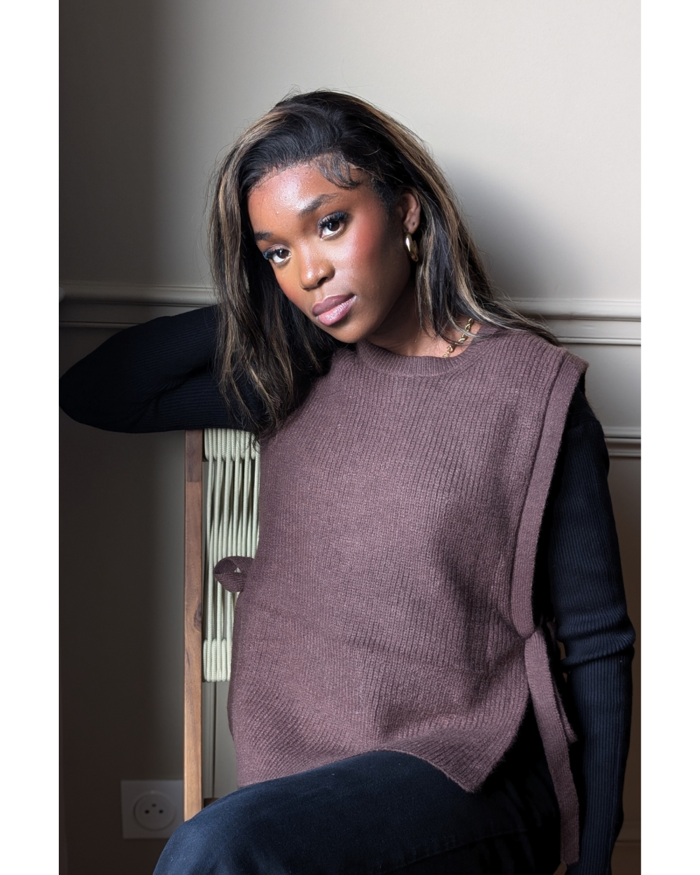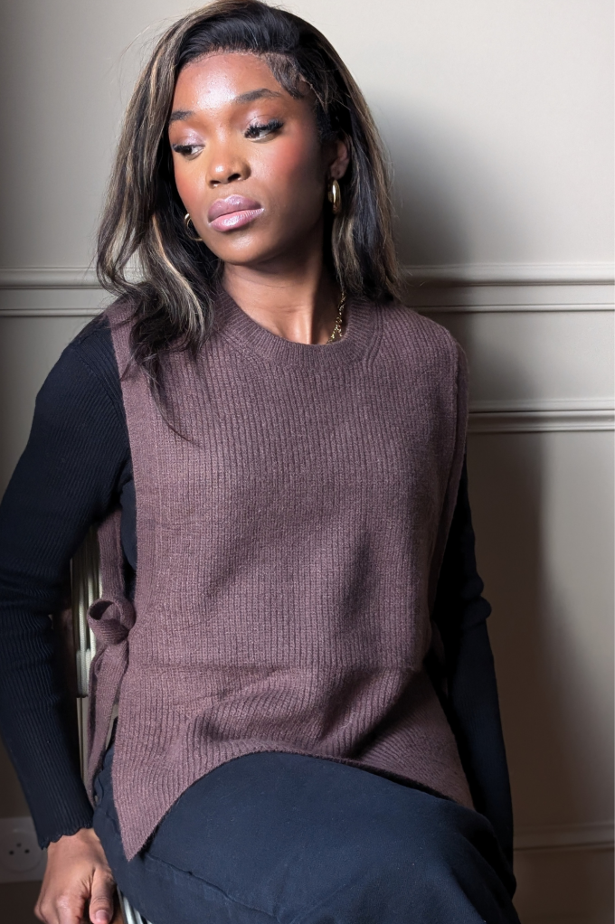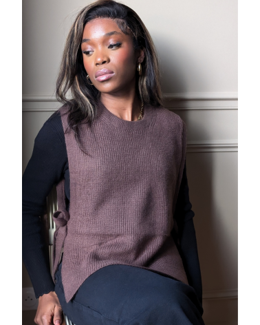 Adoptez le charme épuré du pull sans manches Thalie, une pièce qui conjugue modernité et confort avec subtilité. Tricoté dans une maille fine et douce, ce modèle chocolat s’impose comme un essentiel du dressing automnal et hivernal.Son coloris chocolat profond apporte chaleur et sophistication à toutes vos tenues, qu’il soit associé à un jean brut, une jupe midi ou un pantalon tailleur. Allez, hop dans la box.
