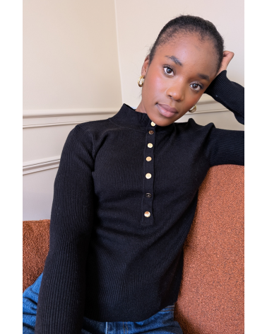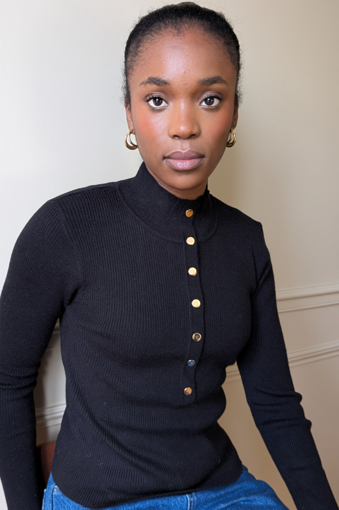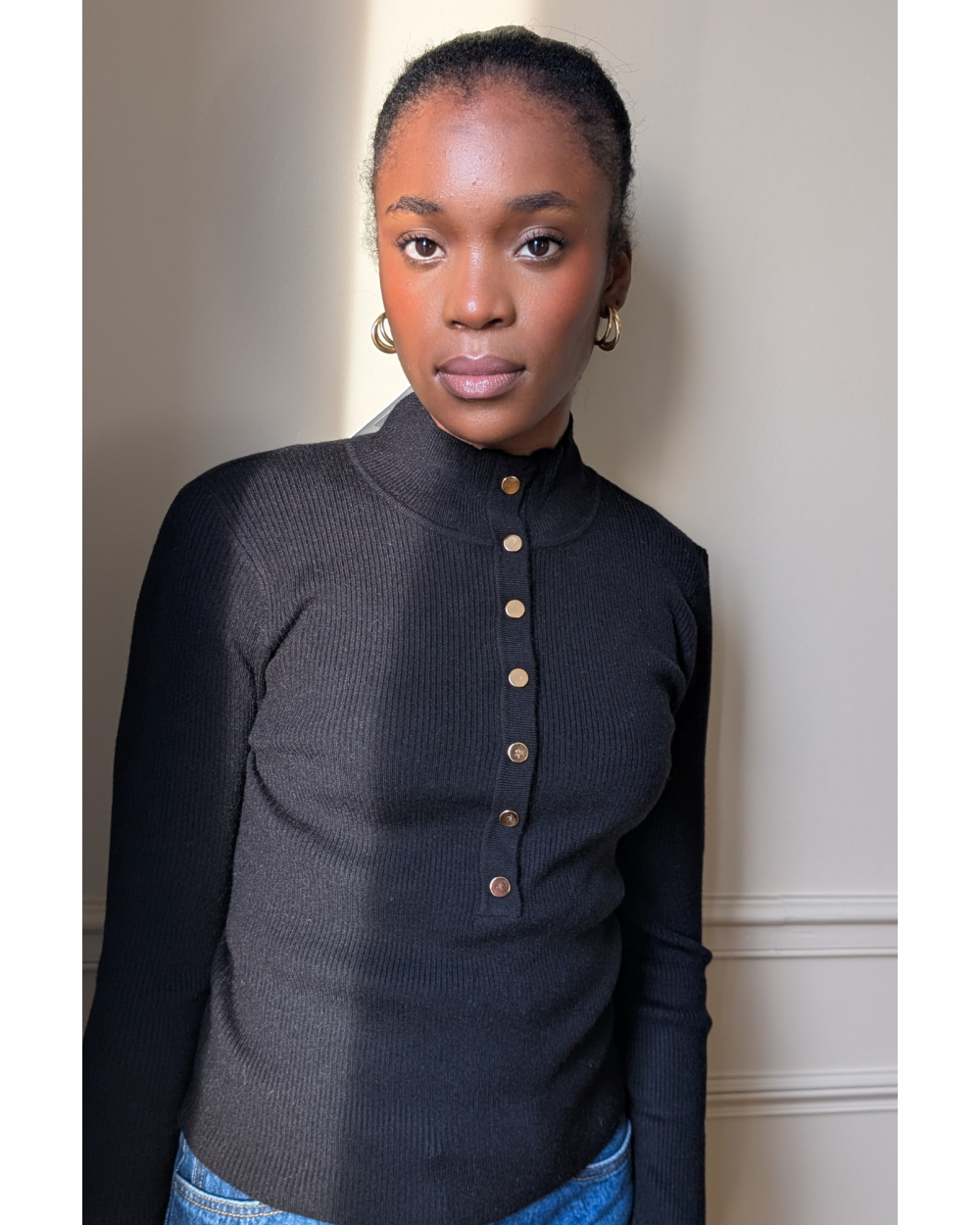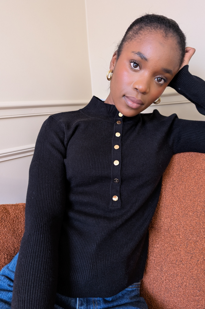 Le top Serra, est la pièce élégante et facile à porter de la saison. Sa maille fine et confortable épouse joliment la silhouette, tandis que sa patte boutonnée dorée sur le devant ajoute une touche féminine et sophistiquée. Avec son col montant structuré et sa coupe ajustée, ce top se porte aussi bien seul qu’en superposition sous une veste ou un cardigan. Parfait pour un look chic et minimaliste, du bureau au week-end. Allez hop, dans la box.
