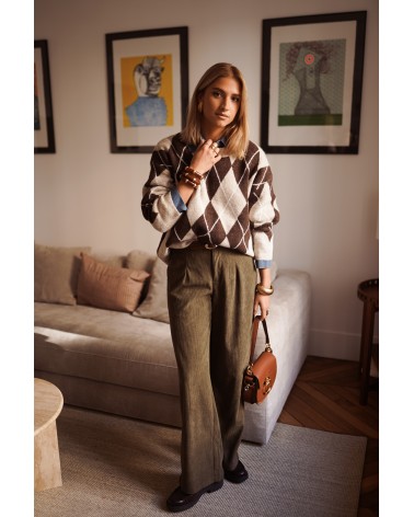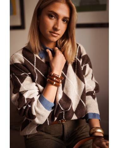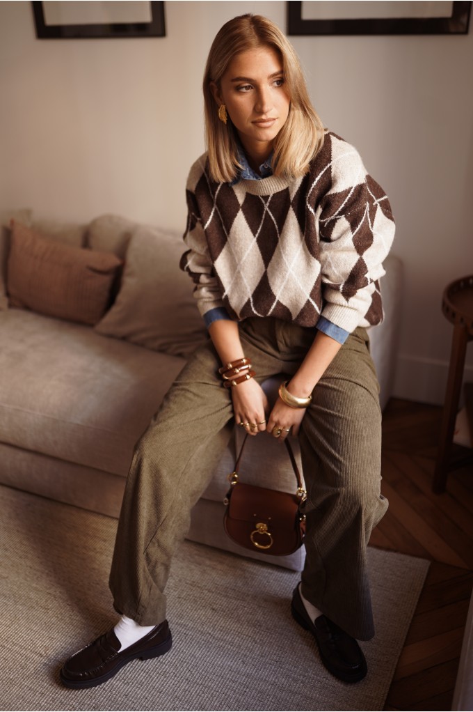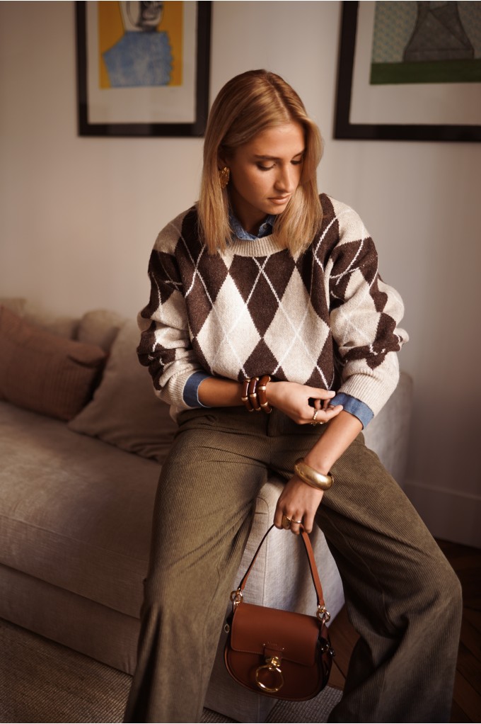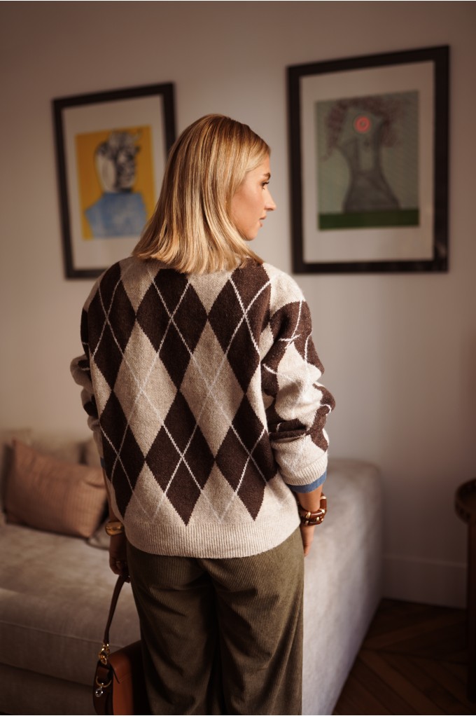 Trina, c’est le pull à carreaux qui traverse les saisons avec style. Son motif losange taupe et prune réinvente le classique preppy avec une touche contemporaine. Une maille douce, un tombé souple, parfait pour réchauffer vos looks d’automne. À porter sur une chemise blanche ou seule, avec un jean brut ou une jupe midi pour un esprit chic et décontracté. Allez hop, dans la box !