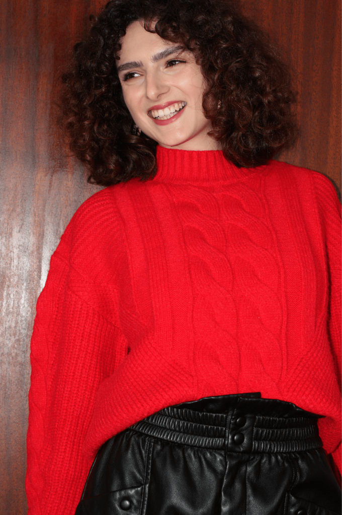 Le pull Lior rouge amènera de la couleur dans vos hivers. Ses multiples torsades créent son unicité ! Un favori de la Team Possible, il faut le louer !