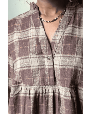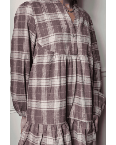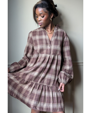 Robe courte à carreaux marron et beige