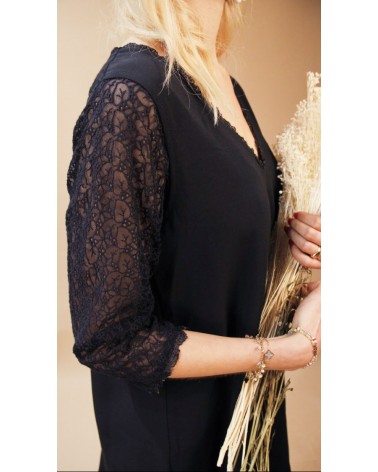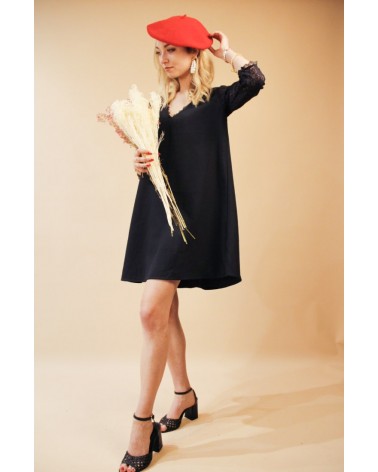 La robe Brooke est à la fois raffinée avec son empiècement de dentelle au dos, discrète avec son coloris noir et son tombé épais et lourd. À porter avec des bottes.