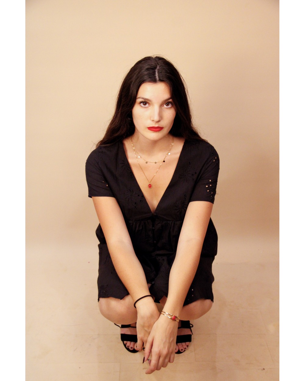 • Décolleté V devant