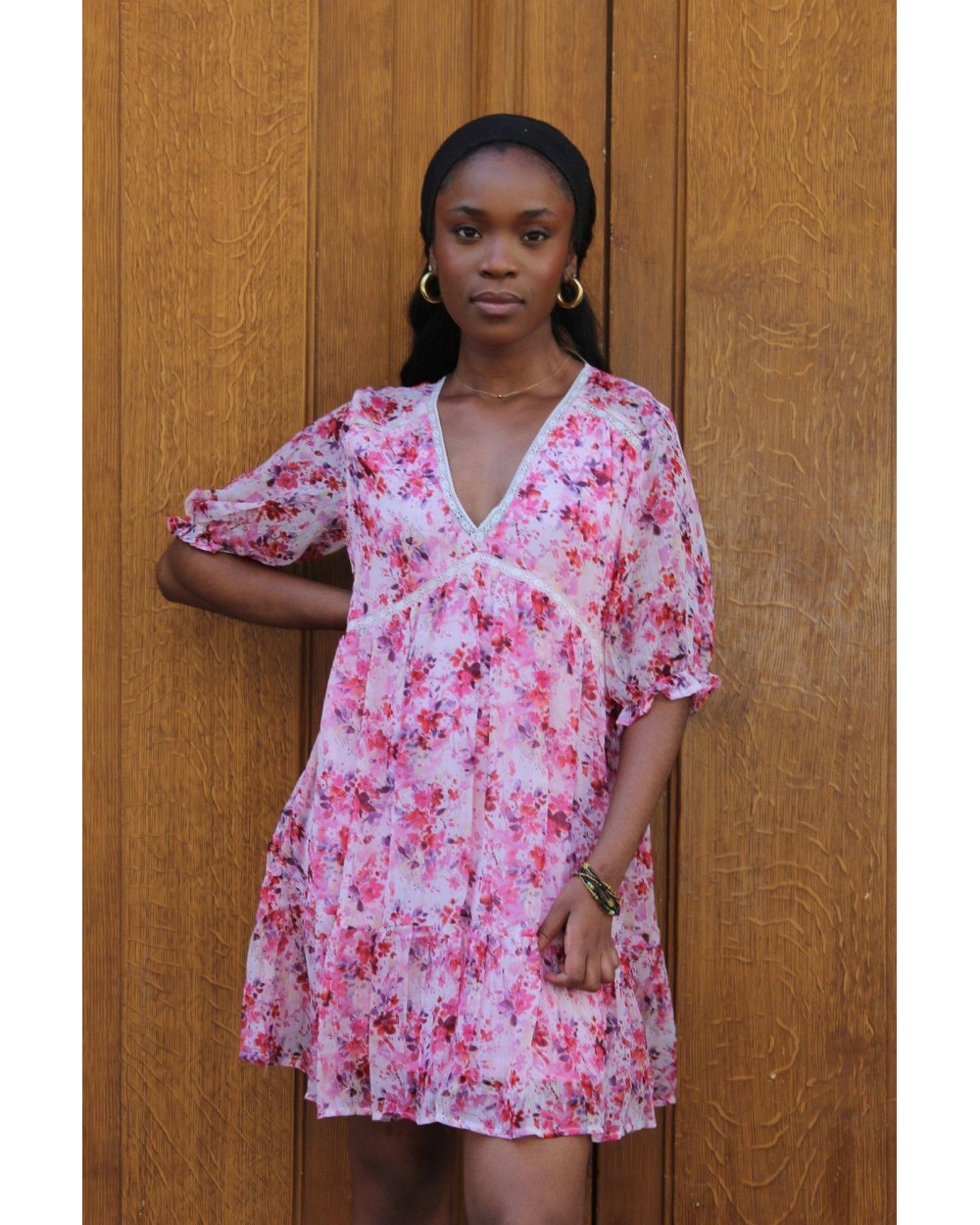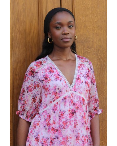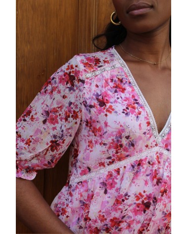 • Robe courte fleurie rose
