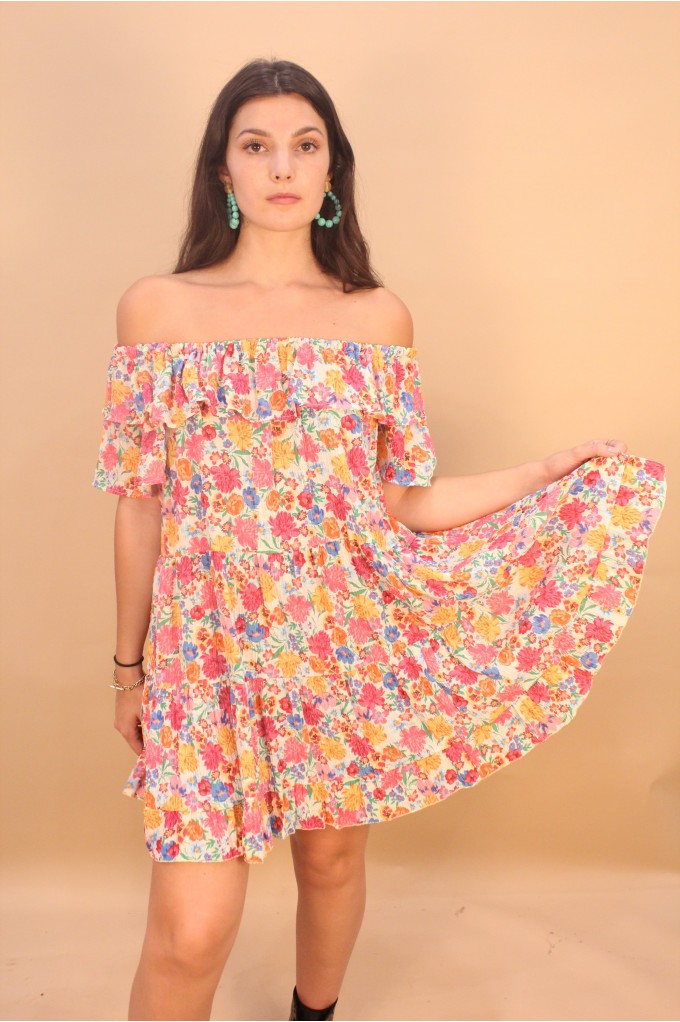 Sa forme vaporeuse et ses épaules dénudées donnent à la robe Léo un look féminin et tendance.