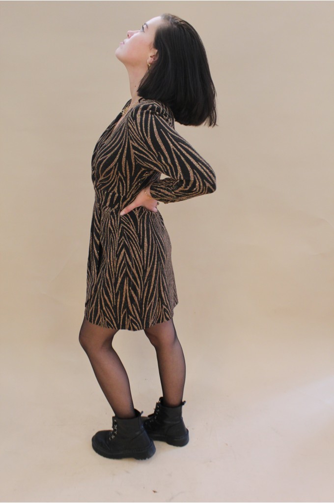 La robe Candy zébrée vous donnera une allure de femme fatale ! Pour une soirée, ou pour le travail, elle s'adapte à toutes les situations. À louer absolument !