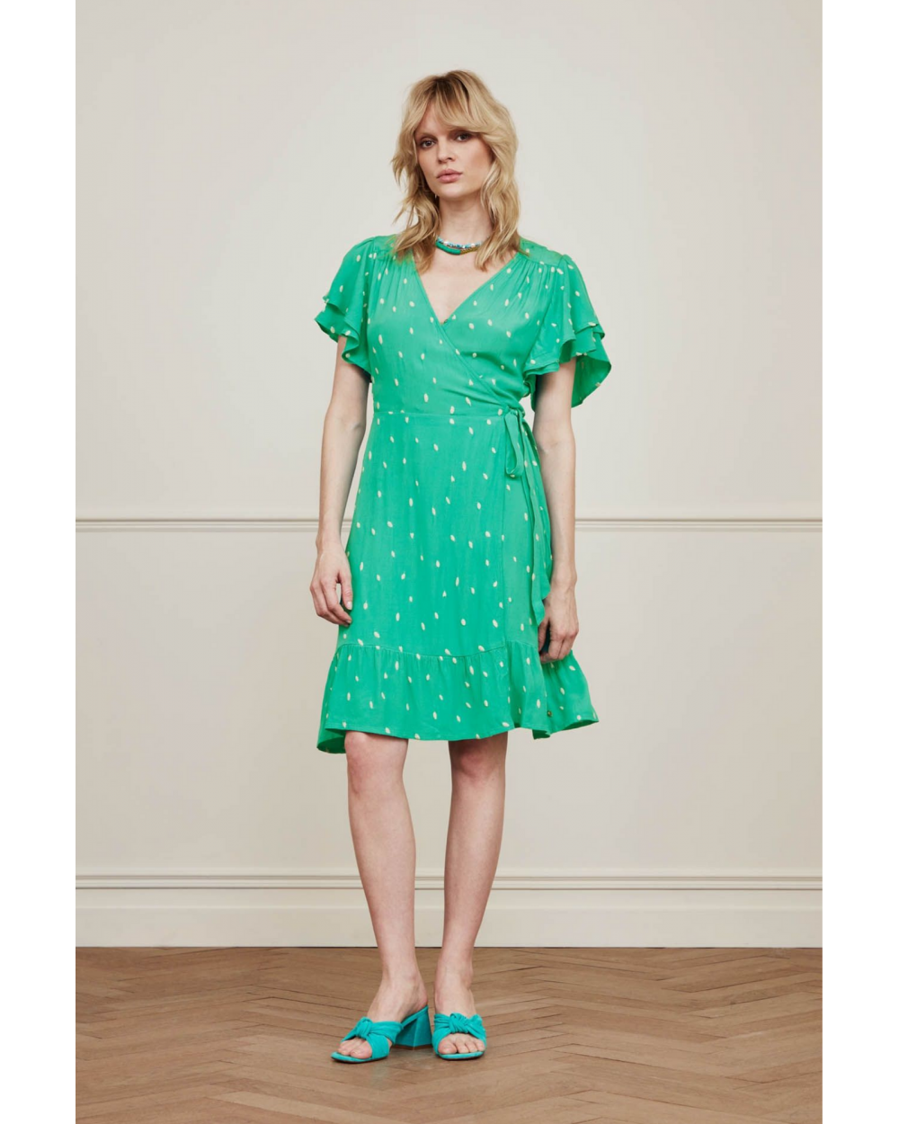 Le modèle mesure 1m76 et porte une taille 36.